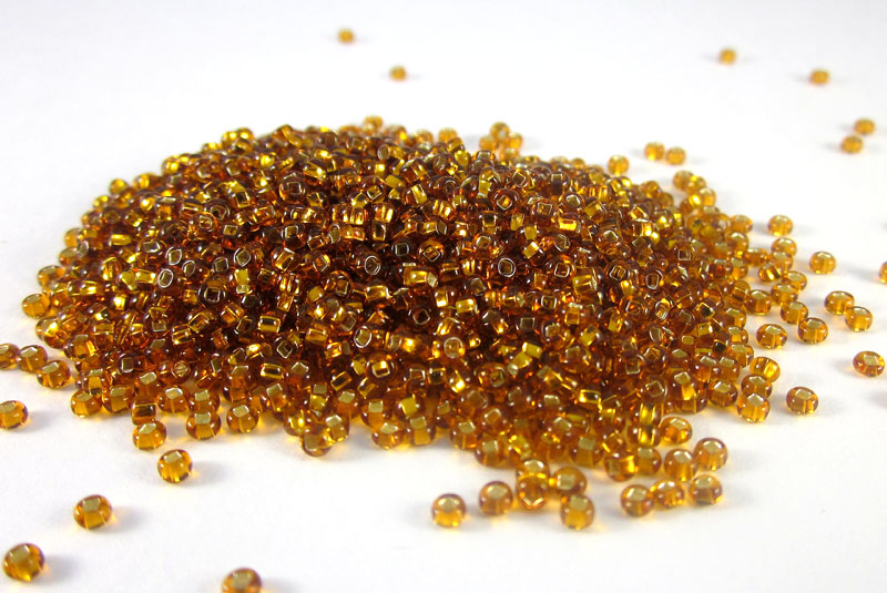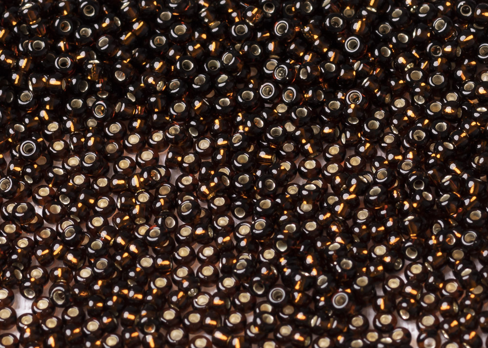Бисер Чехия круглый 08/0 50 г 17140 прозрачный темно-коричневый с серебряным прокрасом