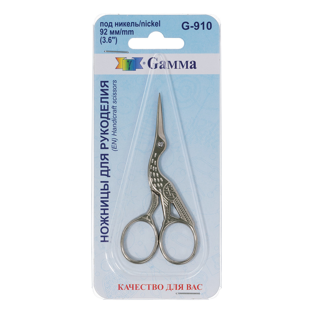 Ножницы " Gamma" G- 910 для рукоделия " Цапельки" в блистере 92 мм под никель